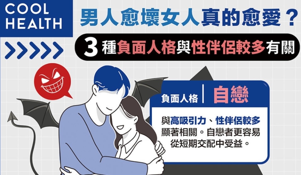 男人愈壞女人真的愈愛? 「黑暗人格」與性伴侶較多有關