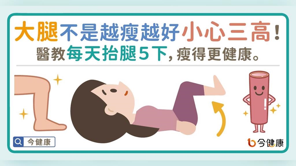 當人體肌肉量少,代謝也會較差、免疫功能也會較弱,再加上體脂高,有不少研究就發現大腿過細的族群,三高、糖尿病等慢性疾病,以及癌症的風險,中風、心肌梗塞的風險,甚至死亡機率都來得比一般體態者更高。特別注意,這些疾病並非肥胖者的專利,也有不少人其實體型是瘦的,這就是所謂的「病態瘦」,提醒民眾多加留意。