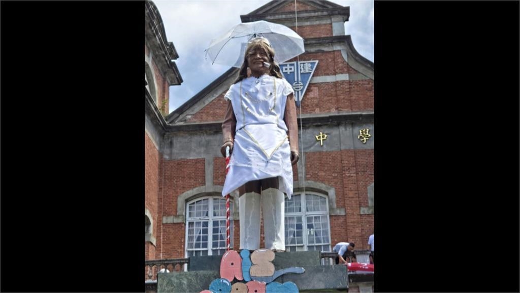 建中校園內"蔣介石銅像",怎麼變得不太一樣,穿著白色洋裝、綁雙馬尾、撐著雨傘,嚴肅的蔣介石瞬間變得超俏皮,化身成為「Ruby蔣」。