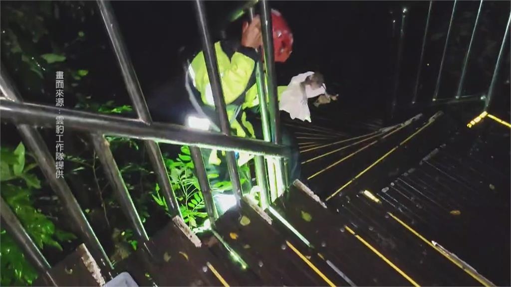 幼猴的身體相當虛弱,搜救人員接獲消息上山救援。(圖/翻攝畫面)山友鄭先生:「很小的猴子一動都不動。」山友拍下一隻小獼猴,趴在階梯上,頭靠著地板,一動也不動,不知道該如何是好的他,將畫面PO上網求助,而小獼猴則是在山友的細心陪伴下,終於移動了步伐,到一旁躲雨,沒多久,就看見搜救人員,冒雨上山。搜救人員:「還活著還活著。」搜救人員將小獼猴輕輕抓起來,並用毛巾將牠身體包裹住,發現牠不停發抖,手腳還很冰冷,趕緊放進提籃中並照燈保溫,小心翼翼帶牠下山。山友鄭先生:「就看到那個好像老鼠的尾巴,我還以為是死老鼠,因為毛茸茸的,尾巴又那麼長,稍微看一下幼猴,真的很小隻的猴子。」搜救人員宋德威:「發現的時候,我們是怕這隻猴子會著涼,所以先拿毛巾直接把牠稍微包起來,先把牠帶到山下比較亮的地方。」