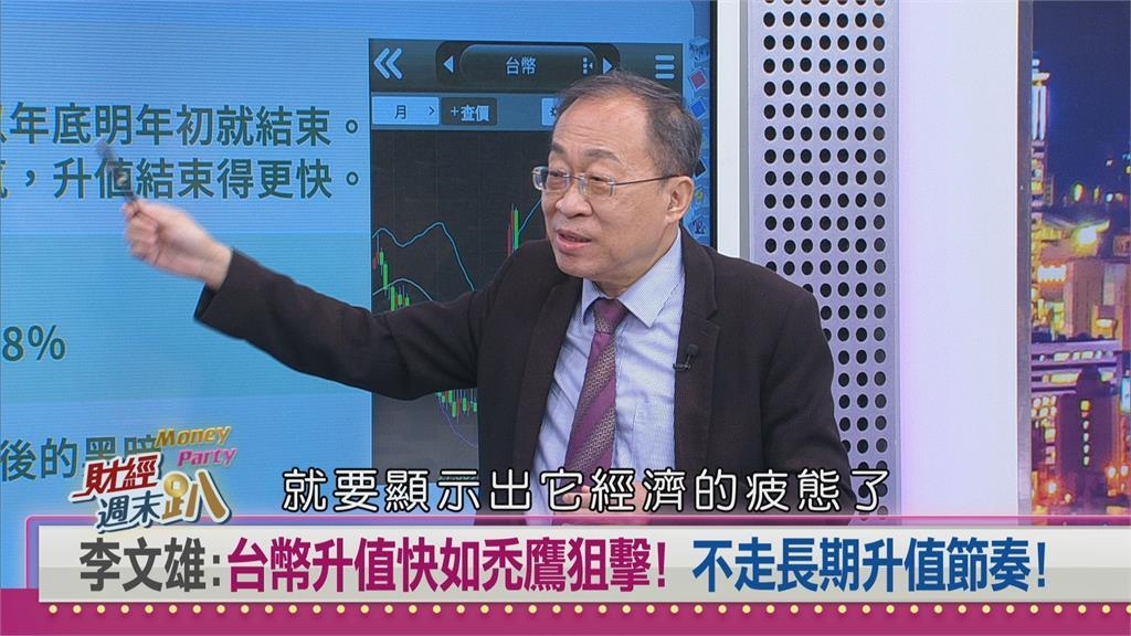 台幣近期呈現快攻式升值,短短三個月內急升,與過去需要兩年時間的緩慢升值模式截然不同。投資學教授李文雄在《財經週末趴》節目指出,預估年底前台幣最高將攻至27.3元,創下20年來最大升幅18%,同時指出,美債投資人正面臨黎明前最後的黑暗,8月底前將是最嚴峻考驗。