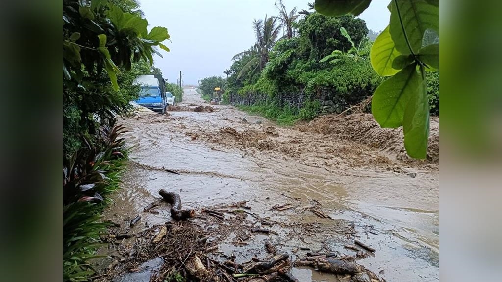 今年第4號颱風「丹娜絲」已轉為中颱,目前正往台灣步步進逼,而颱風的外圍環流更導致高雄市、屏東縣、台東縣皆面臨大雷雨的侵襲。其中,位於台東縣外海的蘭嶼鄉今(6)日宣布,下午風力預測已達停班停課標準,自13時起停班停課;當地的漁人部落至蘭恩路斷無法通行,從畫面中可以看到,強風大雨導致大量土石淤積,就連藍色發財車也陷入泥中。