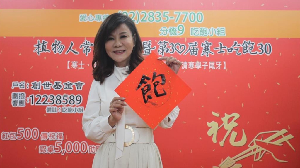 近期推出新專輯的台語天后龍千玉小姐,在馬不停蹄的行程中,今日現身創世基金會,帶來新年新氣象,與單親媽媽吳媽媽,一起仿效國外過年習俗搖晃財神爺吉祥物,祈求『寒士吃飽30尾牙』順利募得善款,也拋磚引玉捐20顆限量抱枕義賣;同時,龍千玉小姐揮毫2020年祝福字『飽』,願寒士朋友心想事成,翻轉人生!