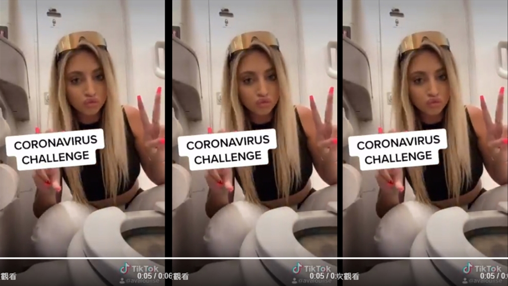 綜合外媒報導,該名網紅是一位擁有超過15萬粉絲的美國網紅艾娃路易斯(Ava Louise),在抖音上也有將近1.9萬粉絲追蹤。近日她在Tik Tok抖音平台上發佈了一則名為「新冠肺炎挑戰」的影音短片,在影片背景中可見她位於飛機上的廁所,只見她蹲在馬桶旁並看著鏡頭,下一秒卻突然伸出舌頭舔馬桶坐墊,並在舔完馬桶坐墊後更擺出勝利V的手勢,而影片剛播出就立馬引起網民熱烈議論。