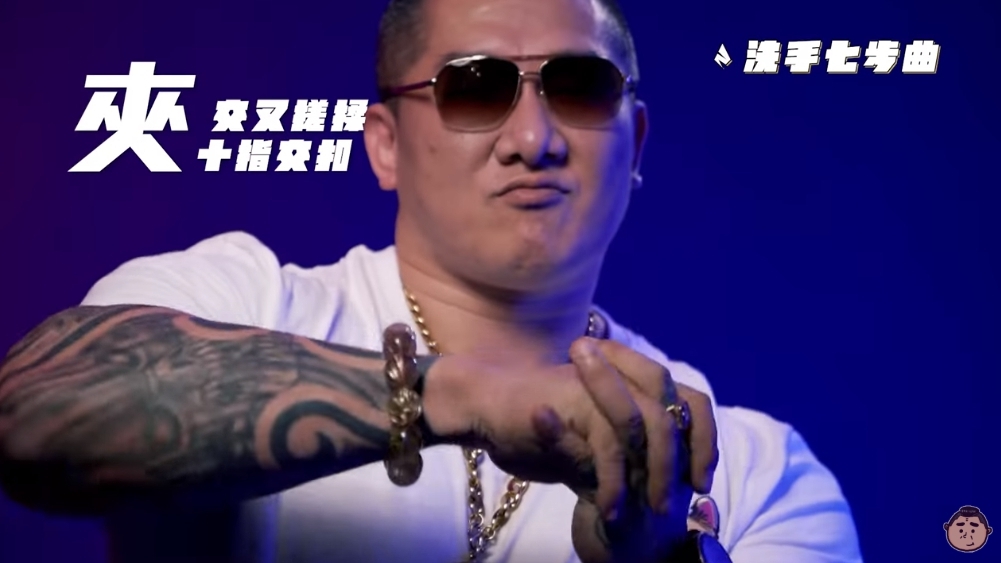 搭配上有點夜店風的音樂還有暗紫色的背景,「洗手七步曲」館長要大家「來來來哩巄來」、「給林北去洗手」,館長嘴角微微上揚,還有兩手交錯的手勢,網友笑噴「有種說不出來的猥褻感」,館長乖乖做了洗手操,更厲害的是影片順便置入肥皂產品,他寫著「公蝦米好膽『麥皂』? 林北就來『賣皂』」,創意十足。