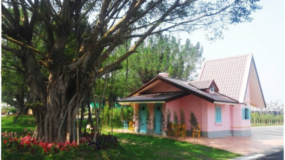 園區內可見許多歐式建築,連警衛室都是少女心十足的粉紅小屋。風車、可愛動物的裝置藝術、雙心花園、滿版的彩繪牆,猶如童話故事的場景,集合所有夢幻的打卡元素,網美們千萬不能錯過!