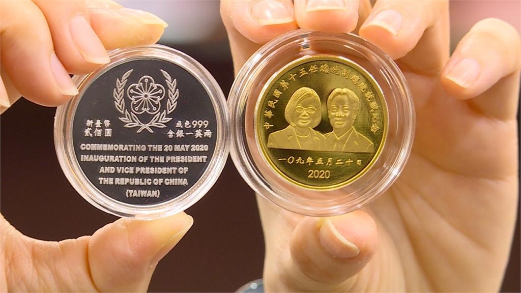 無論金幣還是銀幣,通通印著總統蔡英文、準副總統賴清德的肖像,這是央行發行的第15任總統、副總統就職紀念幣,首度公開亮相。