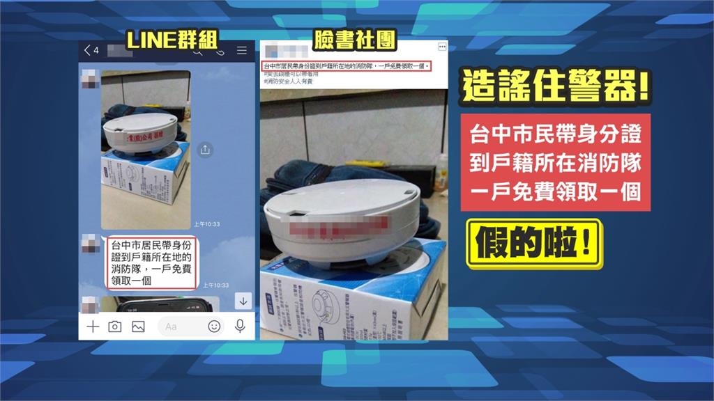 火災憾事頻傳,在台中市,最近許多人在臉書社團-通訊軟體群組看到一則訊息,宣稱市民可以到消防分隊,一戶免費領一個住警器。經過查證,這是錯誤訊息,原本是沙鹿在地企業捐增1000個回饋地方,設籍在沙鹿的民眾可以直接到分隊申請領取,卻被誤傳成,台中市民都可以免費領取,造成美麗的誤會。
