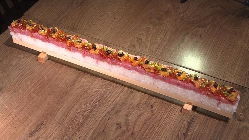 50公分押壽司豪華上桌!一口吃到鮪魚、海膽、魚子醬