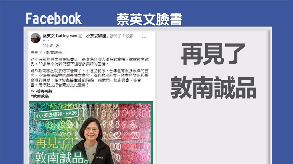 敦南誠品今晚熄燈!蔡英文總統臉書感性道別