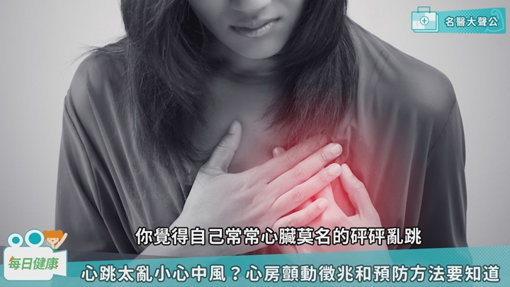 如果常時間會感到心臟砰砰跳,感到坐立難安、四肢無力,甚至頭暈目眩,就要懷疑是否是心房顫動的心律不整。每100個成年人,就有2個就有心房顫動,心房顫動雖然較少引起突發性休克與猝死,但長期下來腦中風風險會升高5倍。