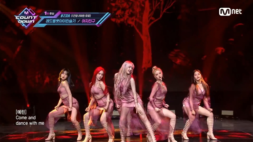韓國知名音樂節目《M COUNTDOWN》本週女力爆發,擁有龐大粉絲群的「小女友」GFRIEND帶來養眼消暑表演,6人秀美腿大跳夏日魅惑新曲〈Apple〉,更成功擊敗同為候補的Red Velvet子團,登上當周冠軍寶座。 期間限定女團I.O.I以C位出道的成員全昭彌(Somi)單飛後,時隔一年發行新作〈What You Waitging For〉,歌迷都期待不已!此次的歐美曲風與Somi的混血臉龐格外搭配,Somi更親自參與詞曲創作。而她上次回歸時被嫌身材管理稍有不足,日前拼命鍛鍊塑造完美曲線,展現令人稱羨的逆天長腿,跳舞轉身時,紅裙整片掀起露出小熱褲,卻絲毫不見贅肉,觀眾看了都驚呼:「瘦了好多!」