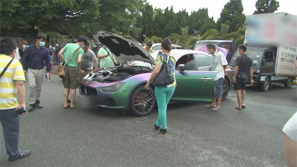 民眾圍著眼前這輛價值數百萬的瑪莎拉蒂猛瞧,買得起的買不起的,通通趁著這個機會看個過癮,引擎、內裝、甚至連後車箱都不放過,行政執行署桃園分署,上午在舉辦拍賣會,有五輛車法拍,其中這輛紫綠色的瑪莎拉蒂,最吸睛。