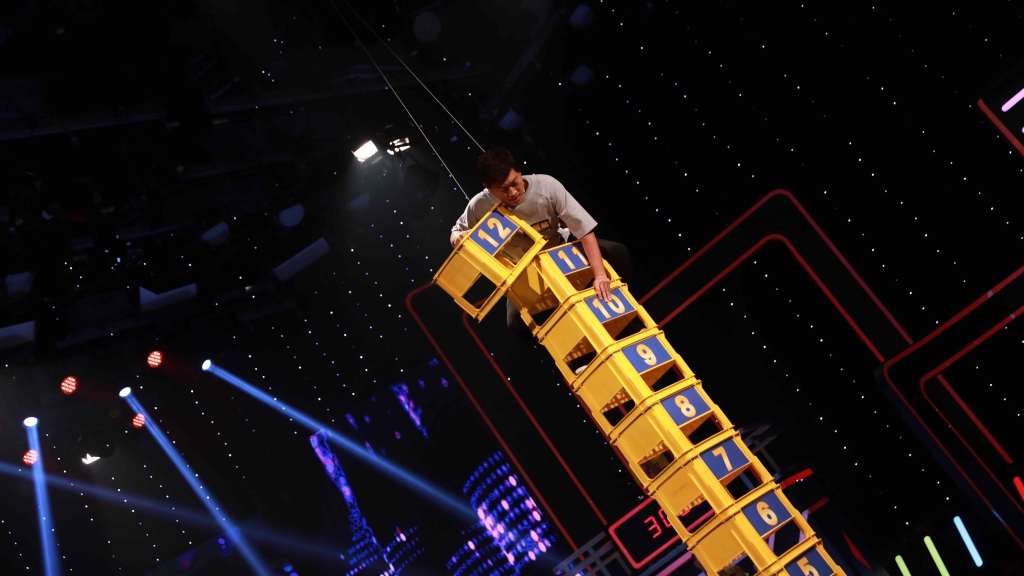 侯昌明為了挑戰自己,還是一層一層慢慢往上爬,雖然過程緩慢,但最終還是爬到了12層,曾雅蘭則是含著感動的淚水,溫暖的一遍一遍喊著:「爸爸(暱稱),加油!」無奈侯昌明最終還是敵不過體力的消耗、手腳發抖,無法站上頂端宣告放棄!曾雅蘭也適時的給予侯昌明愛的抱抱以玆鼓勵,賽後侯昌明則說,原以為疊到7、8層,已經是極限了!但沒想到有一股力量默默的讓他想努力往上爬,但無奈真的花費了太多體力,到最後真的手腳無力,只好宣告放棄!兩人堅定的感情,讓全場動容!
