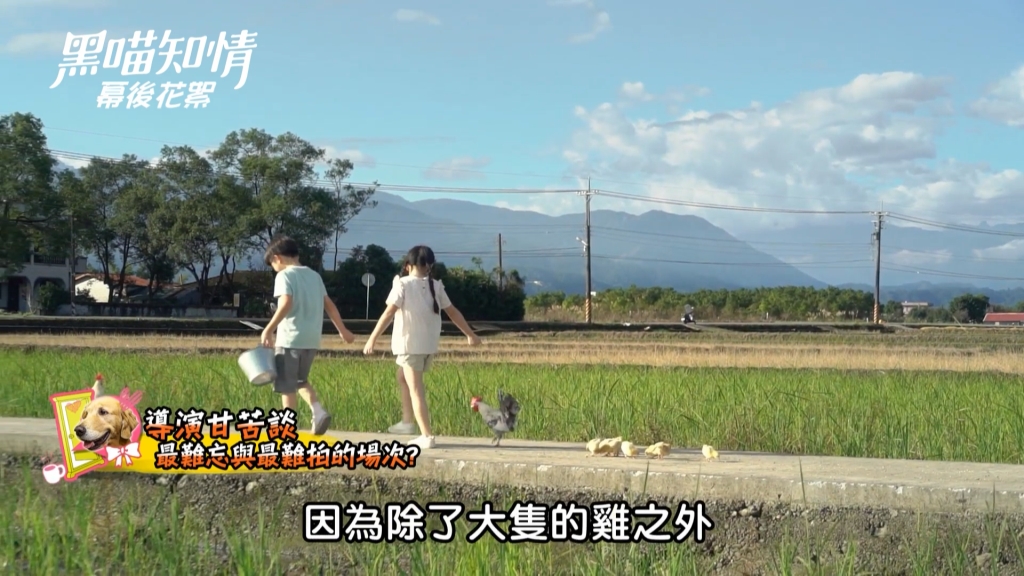 因為小孩及動物都較不受控制,有場要拍佩珊及羅鈞小時在田梗餵食小雞的畫面,就是一場困難度較高的戲。雞對動物指導員來說是一蠻難突破的障礙!要小雞跟在大雞的後面很有規律的排成一列,為了Cue這樣的場景,不管是雞或人都咕咕咕的叫,加上小孩會怕雞,一邊指導還要一邊安撫小孩,是場拍起來蠻崩潰的戲,所以本劇還是用到特效合成讓畫面更加完美自然。