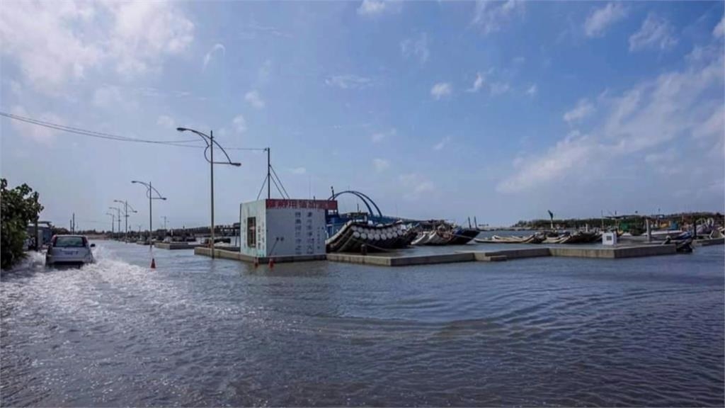 彰化王功漁港,出現大潮,這次的漲潮海水漫過堤防碼頭,海水直接淹沒馬路,在安檢所負責紀錄潮汐的人員說,不曾看過這麼大的漲潮,算是罕見。