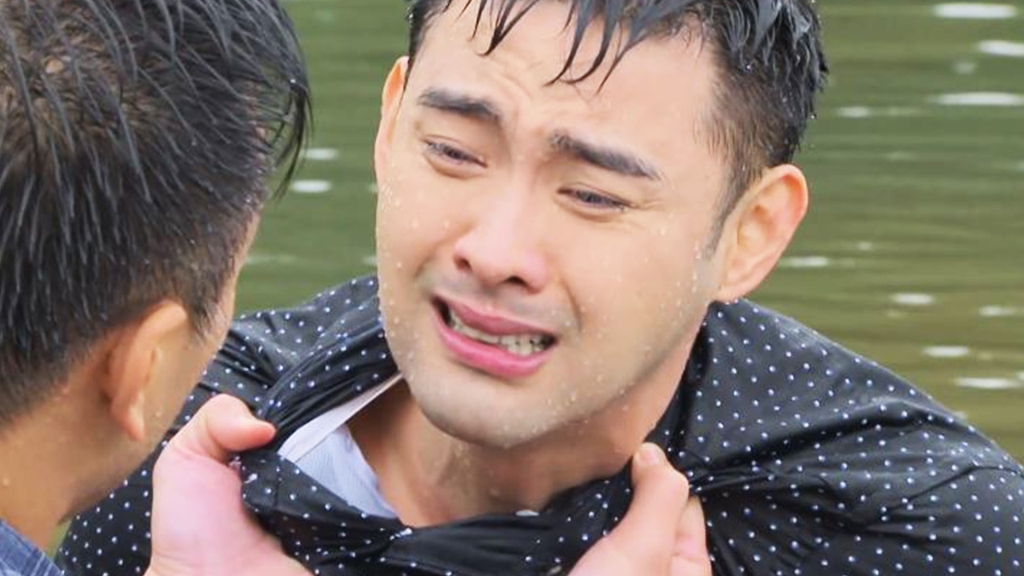 接著邱子芯也跟著下水,三人在水中拉扯,水不停跑到眼睛裡讓子芯睜不開眼睛。不管是幕前的演員還是幕後的工作人員,這一段演出真得是辛苦大家了。