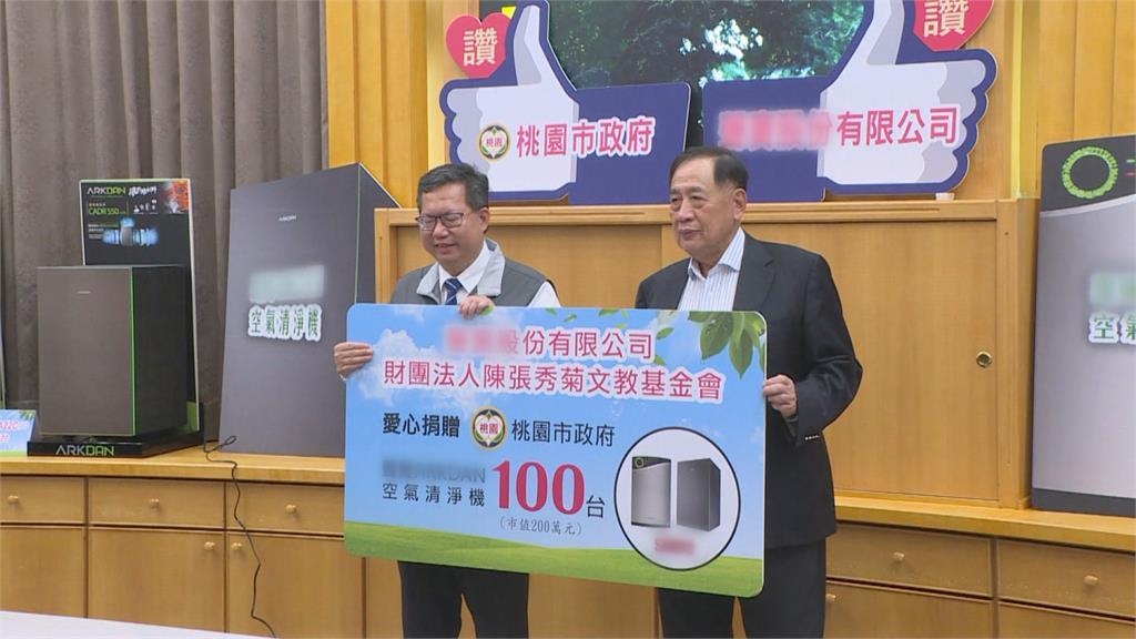桃園市長鄭文燦跟社會局長,也特地出席活動,表達對廠商的感謝。業者從市長手上接下感謝狀,家電廠商捐出了100台、總價200萬的高規格空氣清淨機,就是看到最近天氣日漸轉涼,許多年長者及年幼者,都因為空氣品質不良,而深受過敏和感冒之苦,希望用空氣清淨機幫助他們健康度過這個寒冬。
