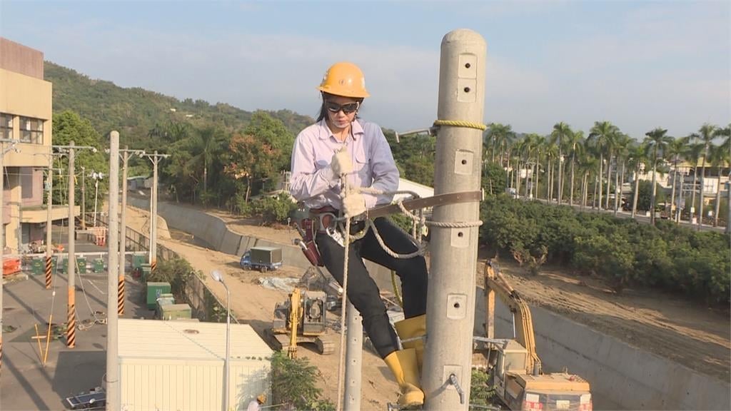 爬電線桿拉電線 台電施工班增四新「嬌」點