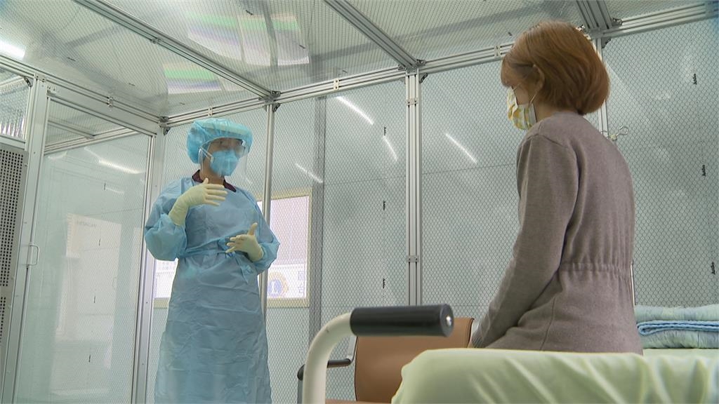 這一套負壓可以緊急安置居家隔離急診對象,醫護跟病患各一出入口,降低病毒傳播機會,透明裝置方便醫護人員觀察避免不必要接觸,日立亞太公司總經理梁琼瑜表示,「室外地區可以馬上組裝,更重要的是像現在,在採訪的室內,傳統建築的高度,也可以立刻組裝起來,可以避免土建機電,重新蓋房子。」