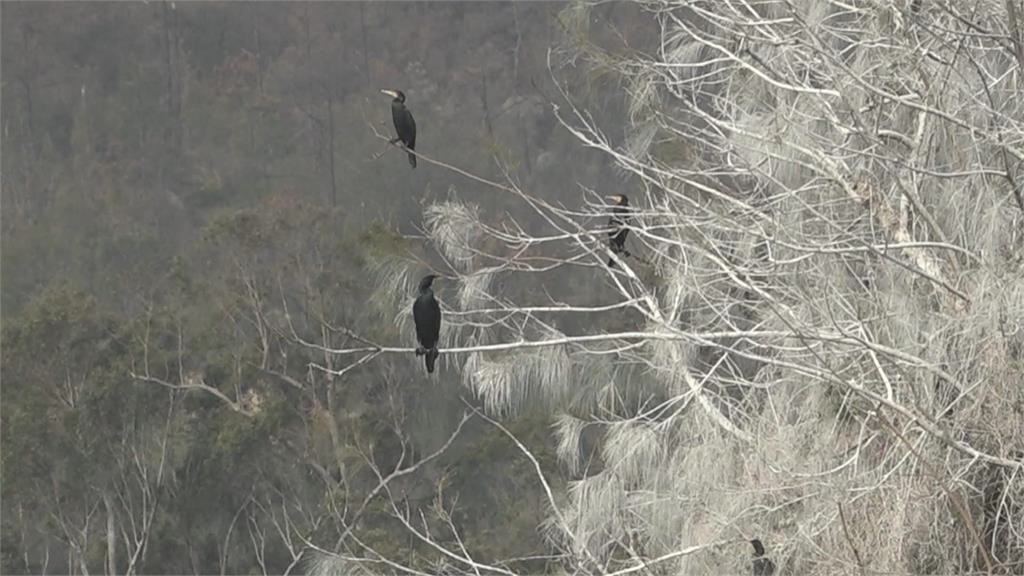 金門下雪了?誤會大了!鸕鶿過冬便便染白樹枝「偽雪景」