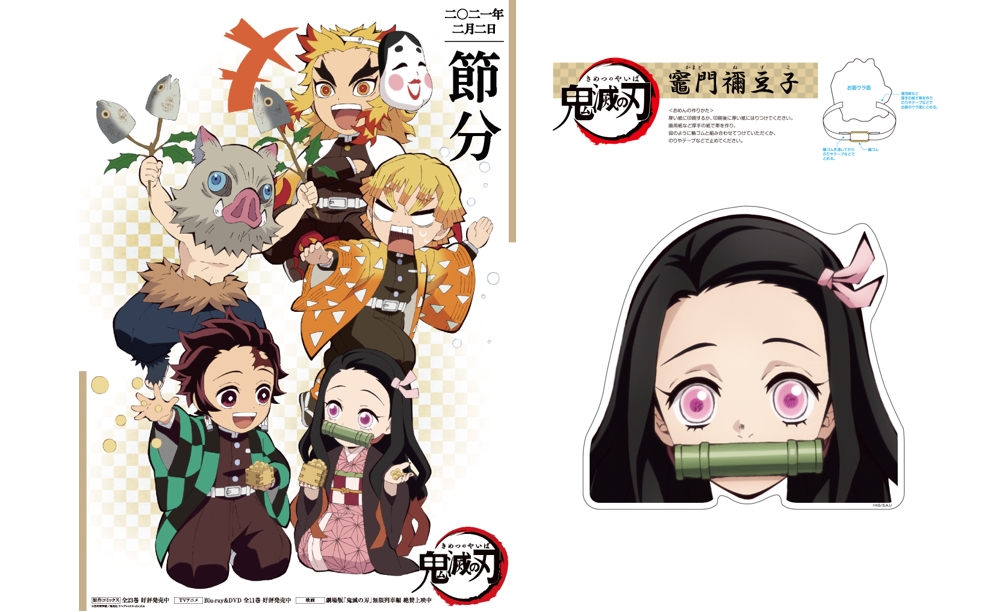 因應日本「節分」的習俗,鬼滅之刃官方網站推出一系列角色們的面具,讓粉絲的可以下載來DIY製作。