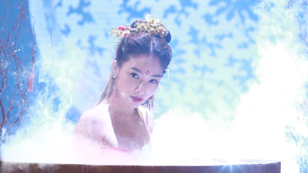而辛苦的準備果然也換來令人驚艷的完美演出!張家瑋以嫵媚眼神搭配撩人舞姿,一舉一動都散發女神氣勢。張家瑋先化身古代貴妃,搭著男舞者華麗登場,舞動中一轉身脫下紅色罩衫,跳進木質澡盆,煙霧繚繞中泡起貴妃浴,再大膽甩掉肚兜,尺度爆表,下一刻又穿越回現代,穿著火辣睡衣大跳熱舞,最後更直接在攝影棚,淋浴上演濕背秀。
