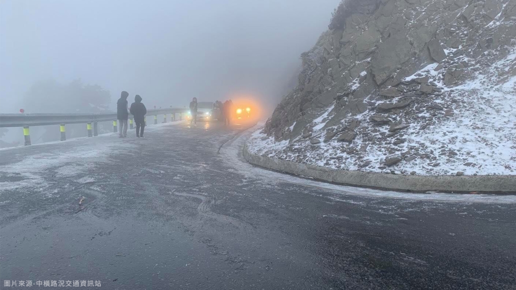 據「中橫路況交通資訊站」臉書粉絲頁表示,台14甲線武嶺至合歡山莊(31~33K)路段,部分背陽面路面結冰,路面也因此變得溼滑,想上山賞景的民眾務必小心行駛交通工具,且為顧及用路人安全目前限加掛雪鏈通行。