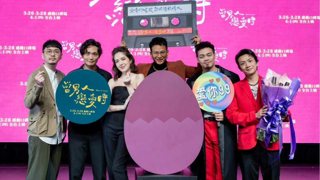 《當男人戀愛時》在白色情人節舉辦電影主題曲MV發布會,茄子蛋三人情義站台,並且分別獻禮給心目中的女神許瑋甯,創意十足的情人節禮物逗得許瑋甯樂不可支且現場承諾若是票房好就和茄子蛋合唱歌曲來答謝觀眾。