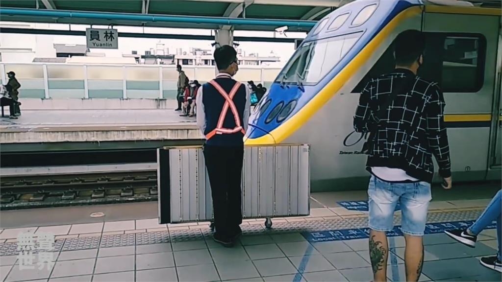 這段影片中,只見一名台鐵車站員工拿著斜坡渡板,等待著即將進站的區間車。區間車到站後,員工熟練的將渡板架設在車輛與月台中間,讓車上兩位使用電動輪椅的乘客,能輕鬆將輪椅開下車。拍攝者上車後,也拍下台鐵在車廂中提供給輪椅族的空間,位在車廂牆上的對講機,正是讓輪椅族可以呼叫台鐵人員,請求他們安排協助下車的服務,由此看出台鐵對輪椅族乘客的重視。