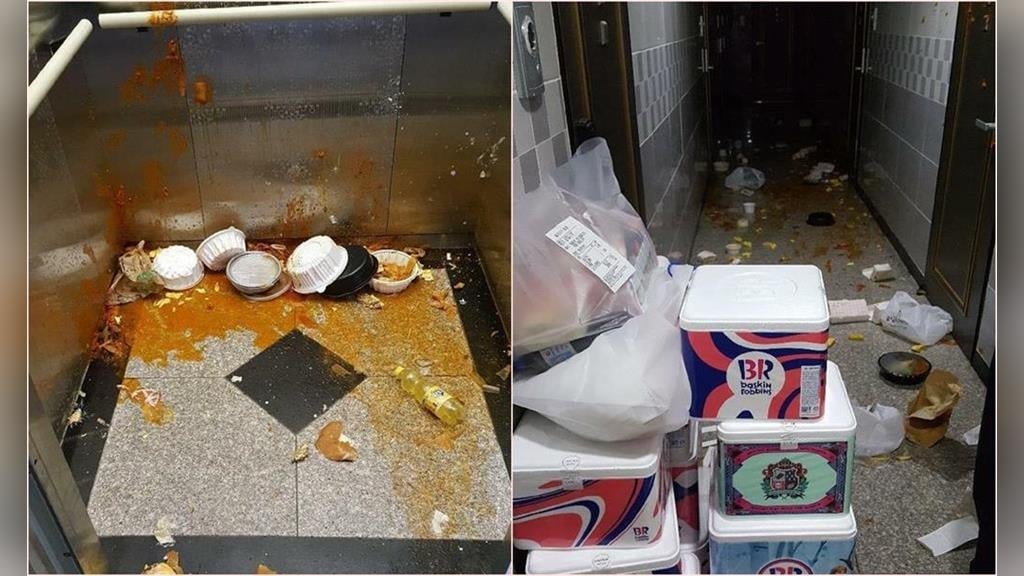 韓國外送文化發達,一名女子就一次訂了近100萬韓圜(近台幣3萬元)的外送,外送員們本以為是住戶開派對,沒想到這名女子拿到外送後,就開始整棟灑這些食物,當中不乏韓國的海鮮湯、炒瑪麵、炸醬麵、拌飯等等,甚至還有冰淇淋與蛋糕,讓住戶的電梯與走廊牆壁門把上都是食物。