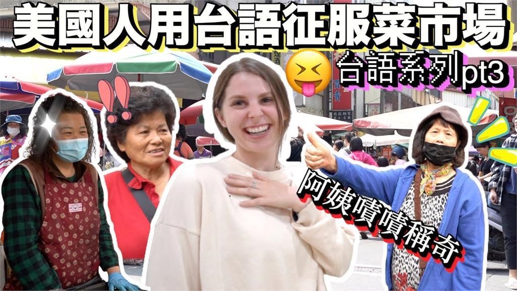 台語可說是傳統市場裡的共通語言,為了融入台灣文化,美國YouTuber「莎白」特別拍攝影片,挑戰全台語方式在傳統市場買地瓜葉、紅蘿蔔與九層塔三樣菜,影片一出,吸引眾多網友大讚她的台語很厲害,「希望大家都來學台語文」。
