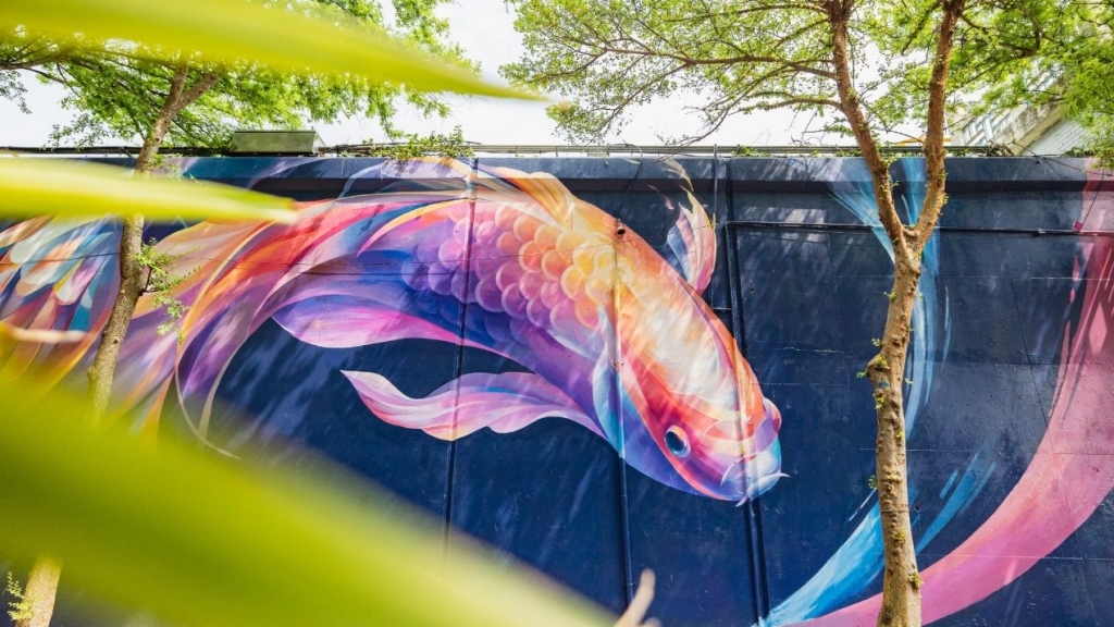 基隆河左岸5號水門堤壁換新衣!上頭繪著色彩鮮艷的魚,生動又繽紛,非常吸睛,是最新的打卡景點!