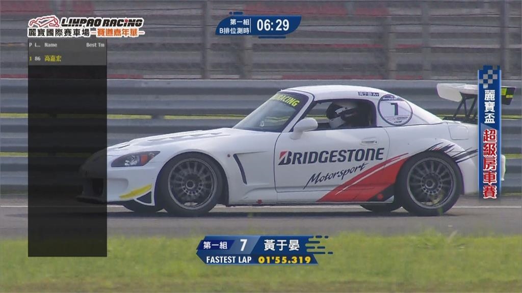 最後關頭加速奔馳,麗寶超級房車,挑戰賽排位賽,最後曾奪下大鵬灣,年度冠軍車手的黃于晏,拿下排名第一位。