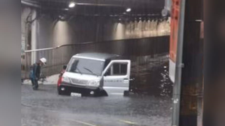 臉書社團「汐止集團」上,不少汐止人崩潰在上面貼出當地淹水情形,有民眾記錄了汐止區中興路一處隧道淹水情形,因為雨太大,有一輛車險象環生開過。