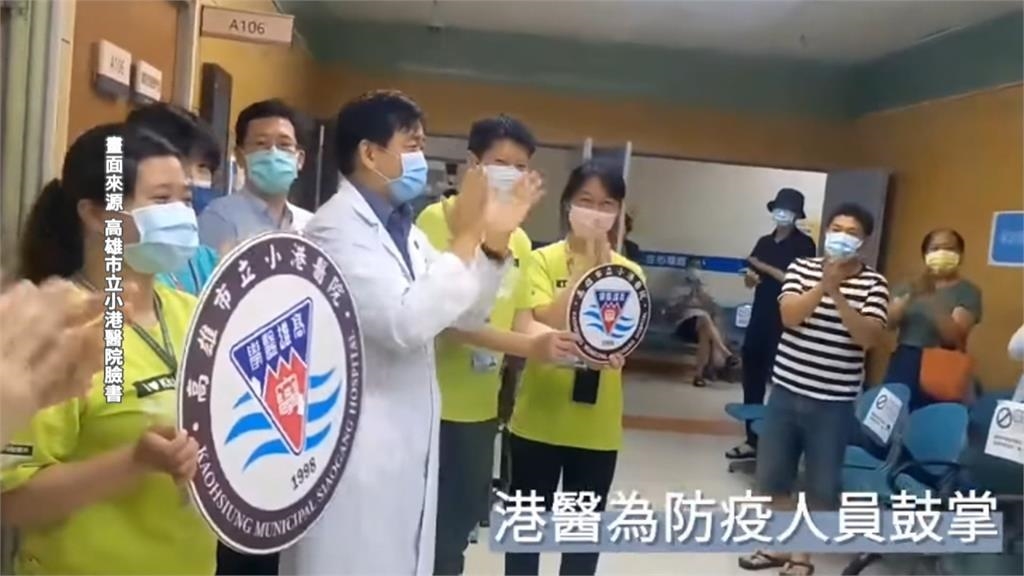 戴著口罩,比出加油手勢,10幾名豆漿店的員工,大家站在一起,歡呼鼓掌為醫護人員加油。醫院裡看診的民眾,全都站起來,和醫生和護士一同鼓掌,向防疫人員致敬。社區傳來如雷掌聲,不少民眾站在自家陽台大力鼓掌,立委邱議瑩的臉書也PO出,高雄一處社區響應為防疫人員鼓掌活動,