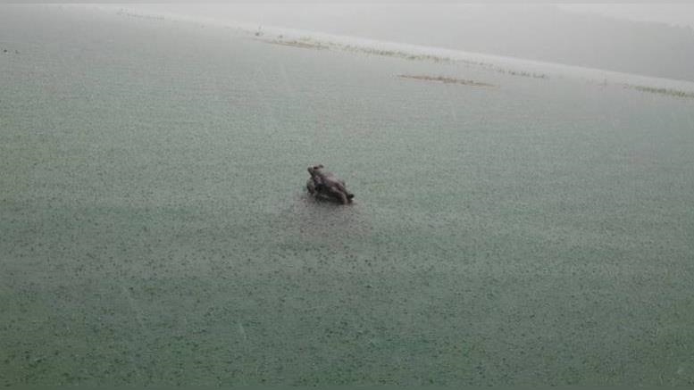 受鋒面影響,雨彈轟炸全台各地,日月潭今(23)日的蓄水量是97.6%,幾乎是滿水位的狀態,距離滿水位748.48公尺僅差0.35公尺,著名景點九蛙疊像,在6月21日時仍有4隻露出水面,最新狀況只剩1隻半在水面上,是全國嚴重乾旱過後難見的景象,也印證水位上升速度十分快。