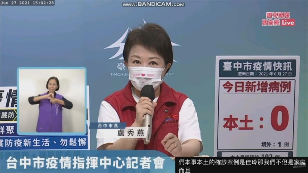 6月27日,台中市維持沒人確診,盧秀燕市長在記者會上開玩笑,要「零家姊妹花」常常來訪。
