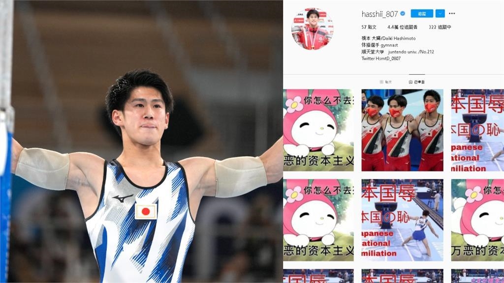 奧運男子體操個人全能項目昨(28日)結果出爐,日本選手橋本大輝以些微的差距,贏過中國選手肖若騰、奪下金牌。沒想到賽果一公布,中國網友不僅大罵裁判評分有問題,還製作許多含辱罵字眼的圖卡並標註橋本大輝的IG、對他展開洗版攻擊,離譜行徑令人咋舌。