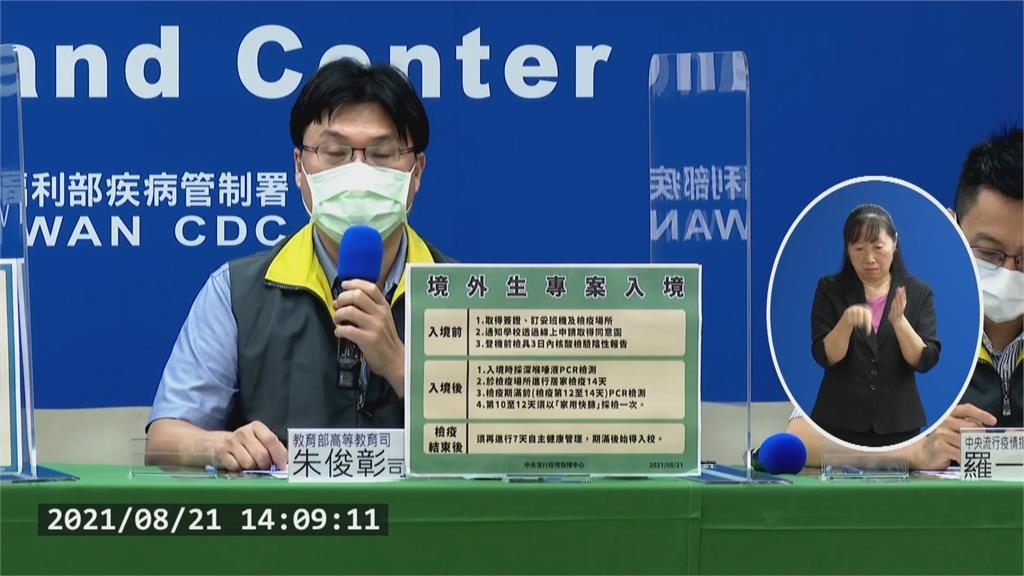 國內疫情趨緩,隨著9月開學日即將到來,教育部昨天(20日)晚上宣布,指揮中心已經批核計畫,8月23日將發文各大學,重啟境外生入境。但教育部要求,學生結束14天居家檢疫後,還要7天自主健康管理,才能進入校園,也讓部分學生擔心,趕不上開學日。教育部表示,會請學校提供銜接機制,若因航班趕不及開學,也會提供線上註冊。