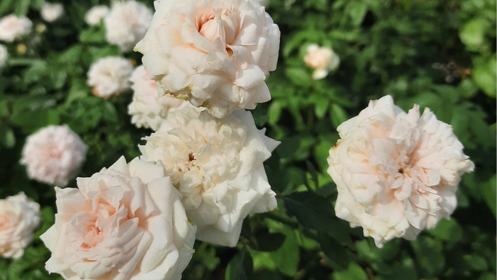 位於新生公園內的臺北玫瑰園,花海區、育種家區及五彩玫瑰區正開放中,在花海區內的「芭蕾舞裙」花瓣會隨陽光照射而變化出不同顏色,育種家區裡的「My Rose」屬火紅色的盃型至簇生型,四季開花,高溫時呈現亮紅色的簇生狀花型,圓滾小巧的豔麗花朵卻飄散著清雅微香;「雪拉沙德」則是深桃紅帶紫色,花瓣前端為波浪尖形,花香為大馬士革為基底的香味融合果香,帶有淺淺茶香及辛香料韻味。還有源自北宋時期的古老玫瑰品種「粉妝樓」高雅白淨,在烈日下花朵顯得小巧白皙。