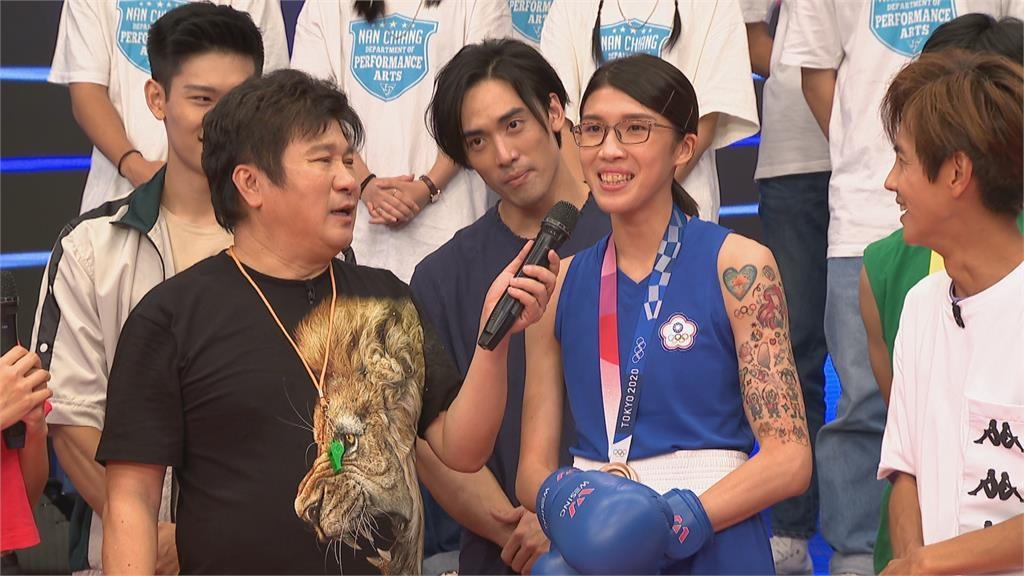 東奧拳擊銅牌黃筱雯說,「第一次拿棒子給他打的時候,就是把他...怕他會痛啦,到後面他們說沒關係用力打的時候,東奧拳擊銅牌黃筱雯,就是使勁還是用力去打他這樣,東奧拳擊銅牌黃筱雯,一開始蠻緊張的,後面真的實際去參與的時候,發覺真的跟看節目一樣,好笑又好玩。」