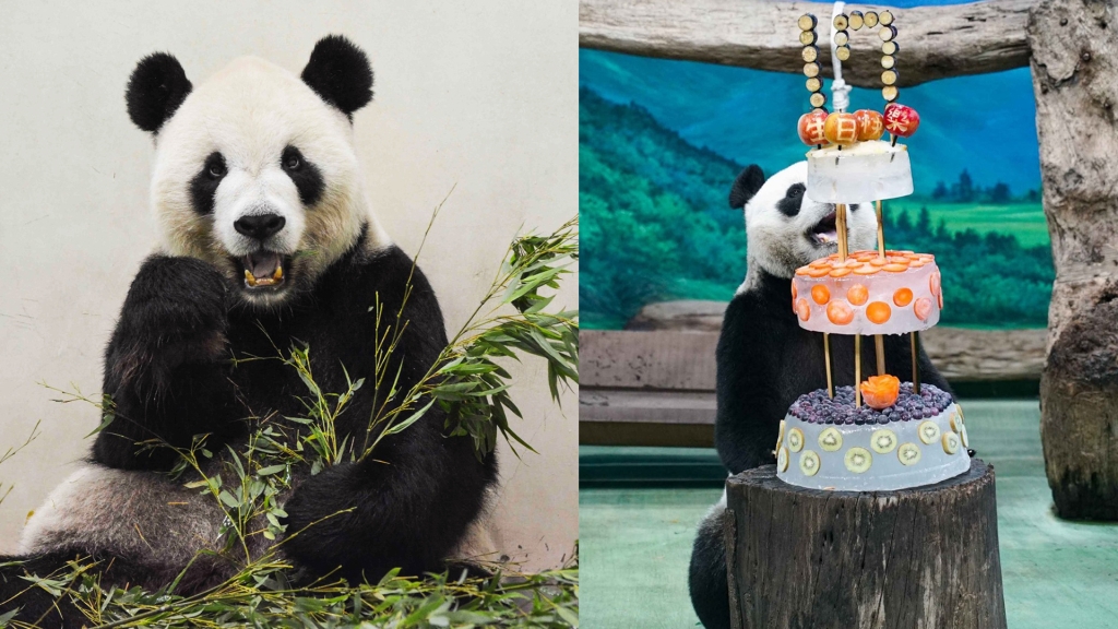 大貓熊「團團、圓圓」17歲生日快樂! 圓仔、圓寶兩姊妹陪吃蛋糕吃得津津有味