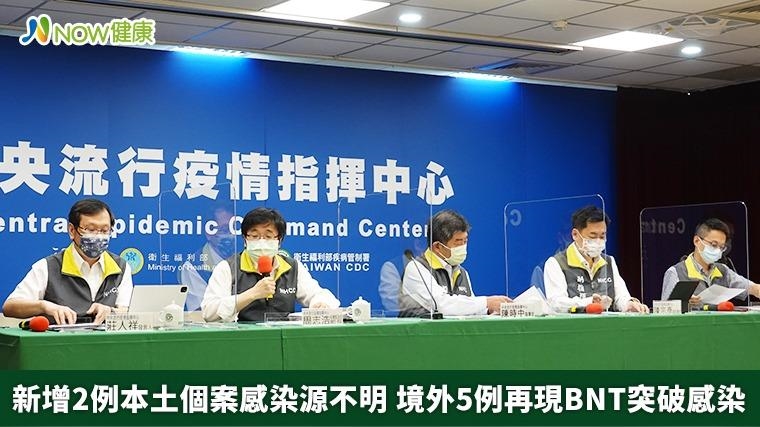 新增2例本土個案感染源不明 境外5例再現BNT突破感染