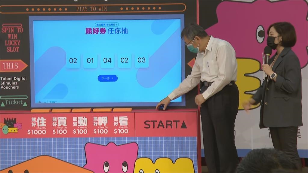 台北市府推出的「台北熊好券」因為預算未過卡關近一個月,3日中午經過北市議會通過,今日上午進行公開抽獎,當天抽獎、當天派券、當天即可使用。今日上午台北市長柯文哲、副市長黃珊珊、秘書長陳志銘還有吉祥物熊讚分別骰出2、1、4、2、3,以此數字亂數抽籤,有登記的民眾下午2時打開台北通App查詢有無中籤。