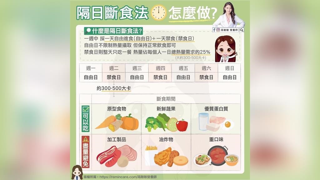 👩🏻⚕️一週中 採一天自由進食(自由日)+一天禁食(禁食日)
