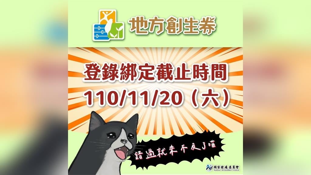 國發會推出的「地方創生券」綁定時間到今晚11時59分,地方創生券發放數量約21萬份,連續4週各抽出5萬份。