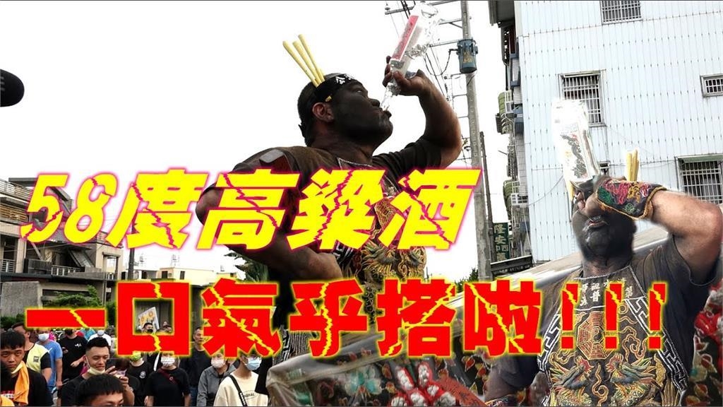 台灣最強乩童?黑面男神「秒殺58度高粱」 全程不眨眼網友看傻眼