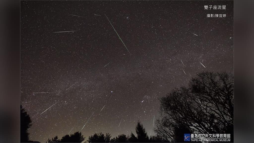 年度三大流星雨之一的雙子座流星雨登場,台北市立天文館指出,雙子座流星雨極大期預估落在今下午3時,流星數每小時上看150顆,偶爾還會出現明亮的火流星。