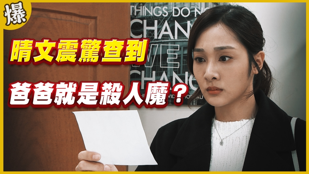 郭晴文悲傷環視她和曾世邦曾經有過許多互動的房子,忍不住觸景傷情。她拿起織給曾世邦的圍巾時,竟看到爸爸郭建興 (吳皓昇 飾) 年輕時的照片,而且他的手臂有燕子胎記。這時郭晴文才恍然大悟自己的爸爸真的是曾世邦的殺父仇人。